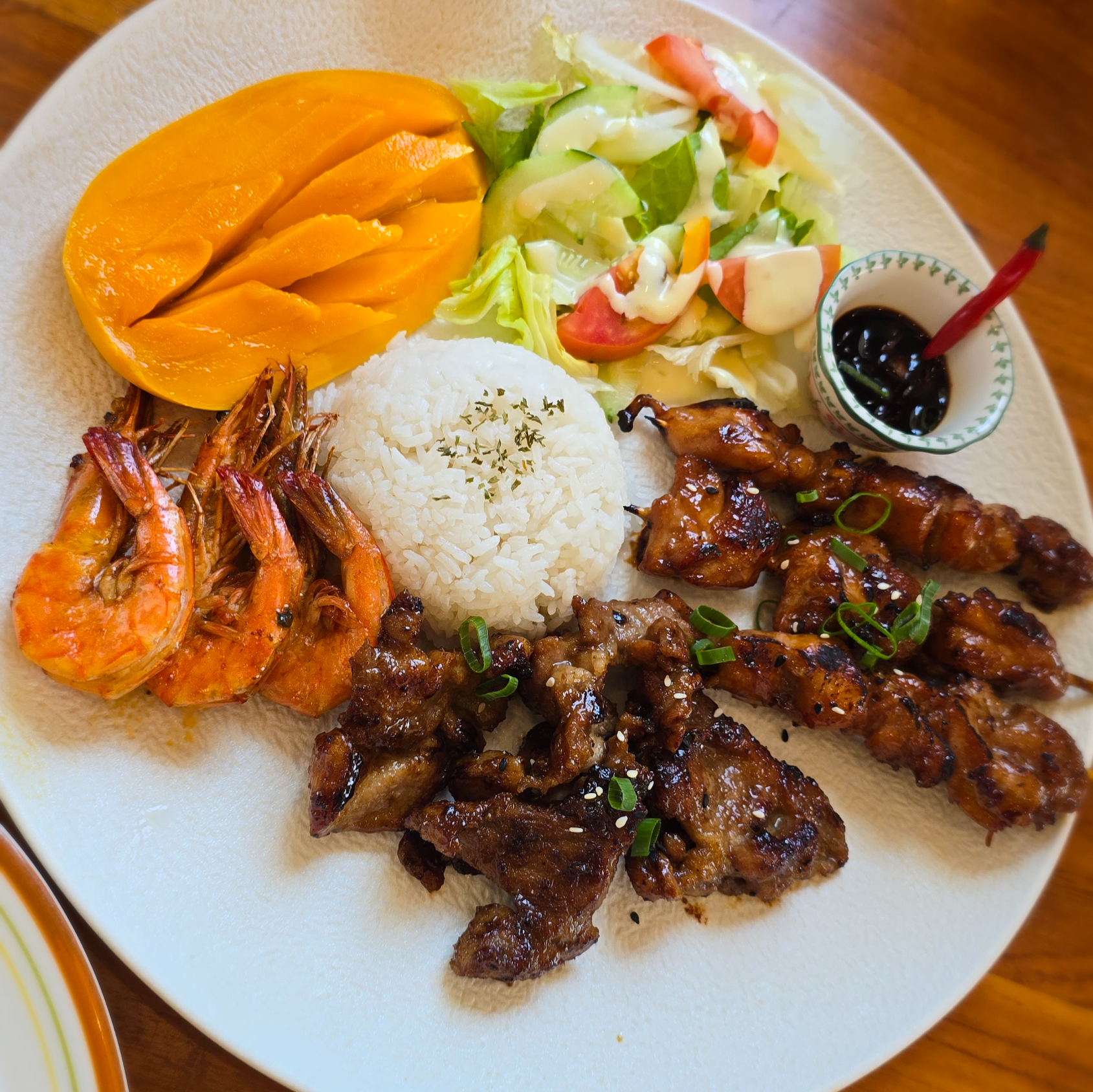 이곳의 주인공은 단연 플래터입니다! 바비큐 립, 새우구이, 신선한 과일과 샐러드까지 한 판에 푸짐하게 담겨 나와요. 여러 가지 메뉴를 고민할 필요 없이 이거 하나면 보홀의 맛을 한꺼번에 즐길 수 있습니다.