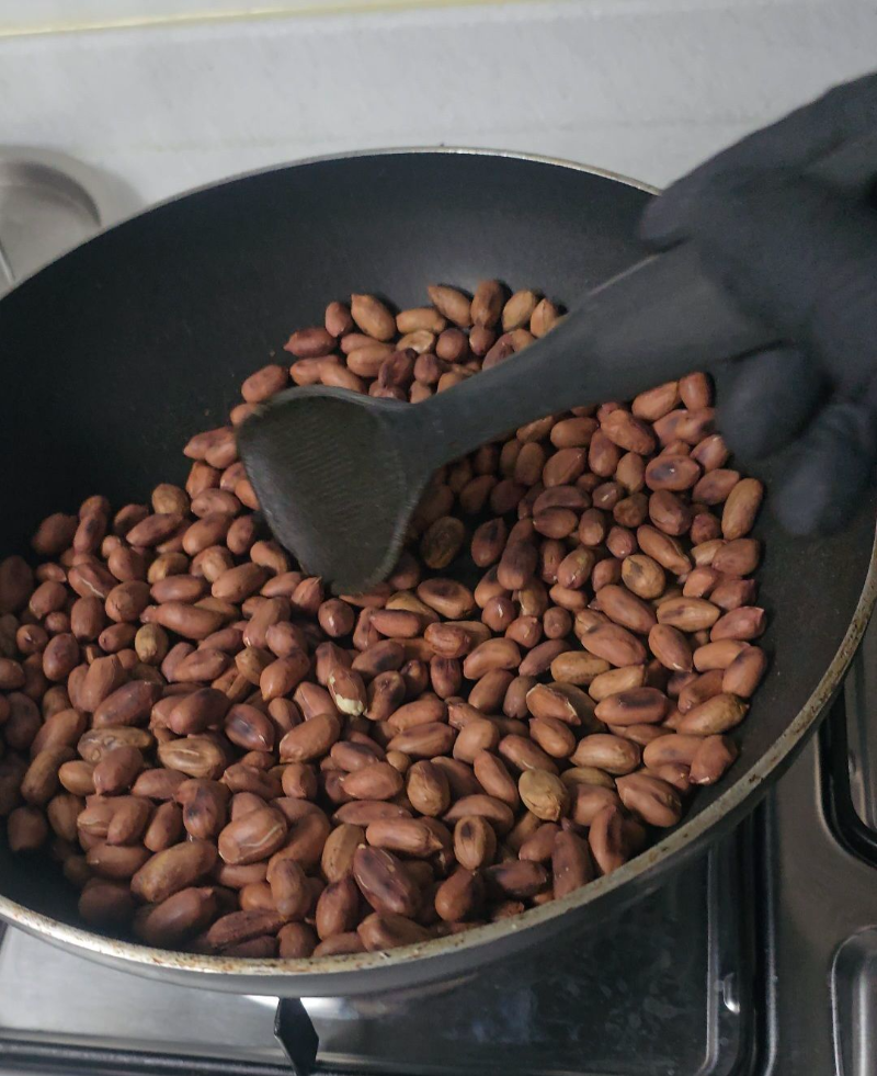 - 완성 확인법: 전체적으로 땅콩 껍질색이 진한 갈색빛을 띠고 고소한 향이 진동할 때, 한 알을 꺼내 살짝 식힌 뒤 껍질을 비벼보세요. 껍질이 홀라당 잘 벗겨지고 알맹이가 노르스름하다면 완벽하게 볶아진 것입니다. (보통 약불에서 15~20분 정도 소요됩니다.)