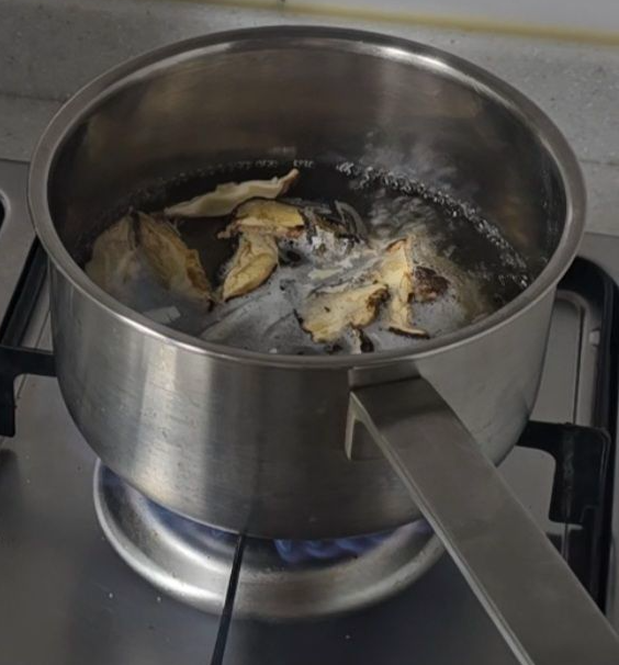 - 물을 붓고 파뿌리, 건표고버섯, 다시마를 넣고 끓입니다.