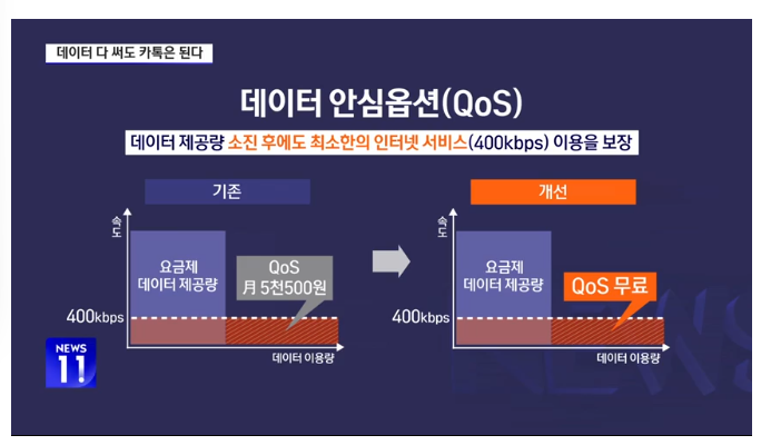 - 기존에는? 데이터를 다 쓰면 인터넷이 뚝 끊기거나, 월 5,500원 정도를 더 내야 느린 속도로나마 쓸 수 있었습니다.