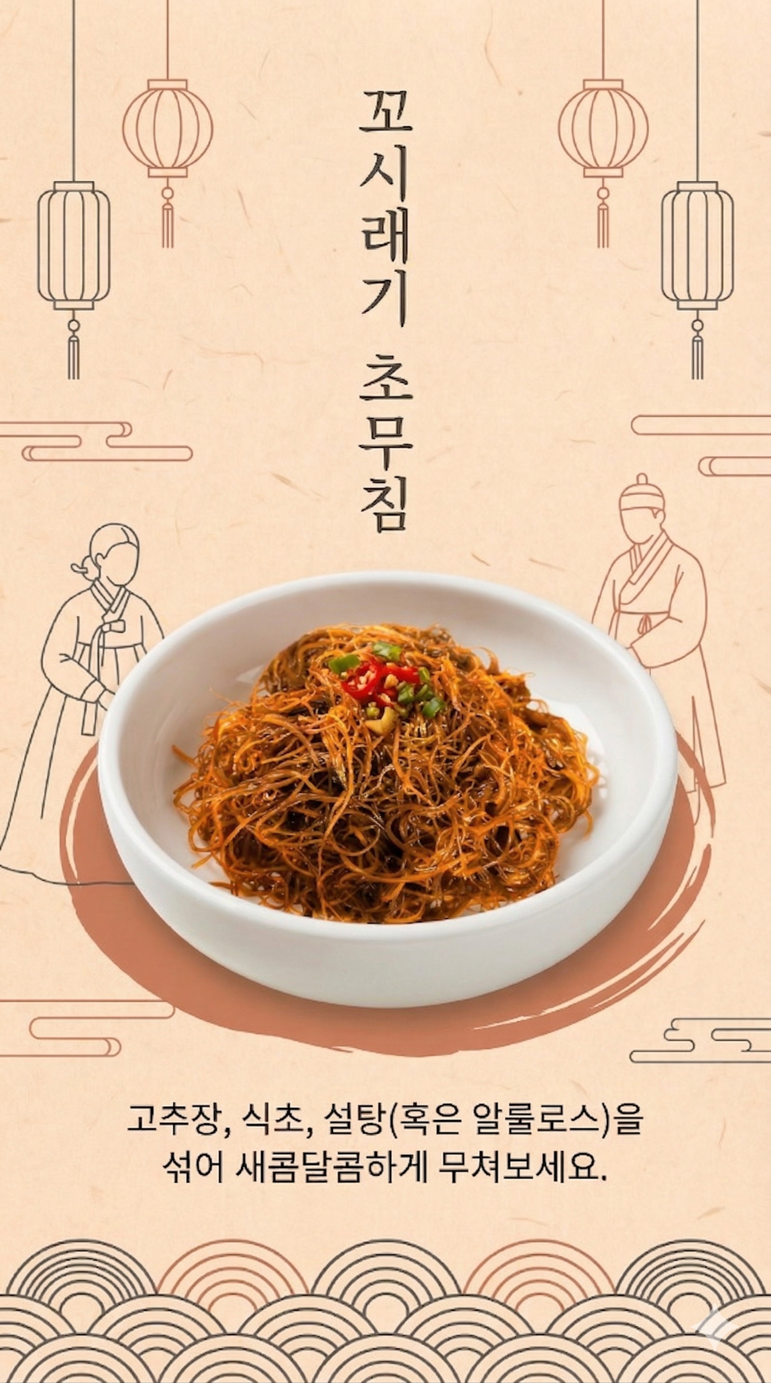 - 꼬시래기 초무침: 고추장, 식초, 설탕(혹은 알룰로스)을 섞어 새콤달콤하게 무쳐보세요.